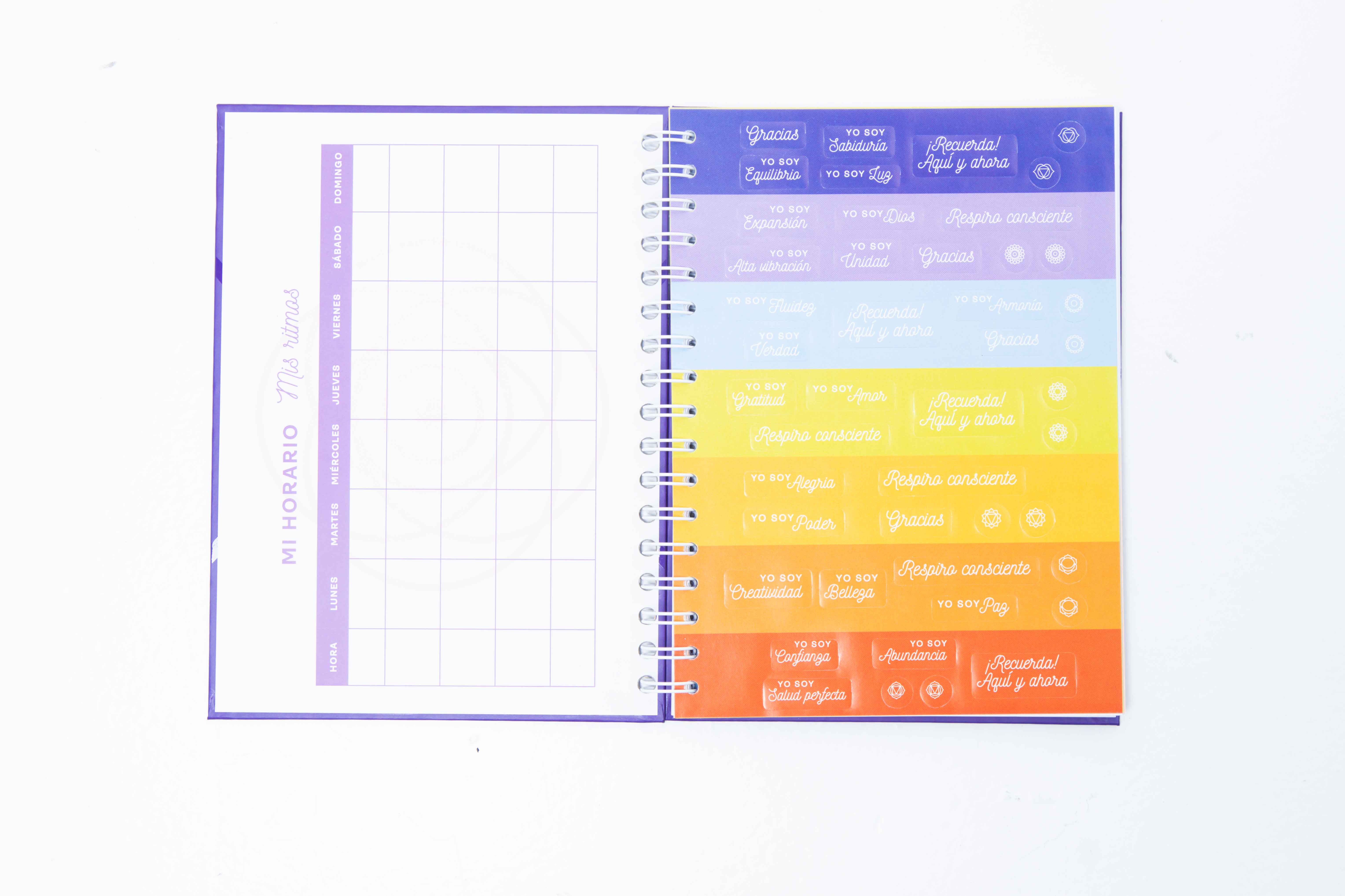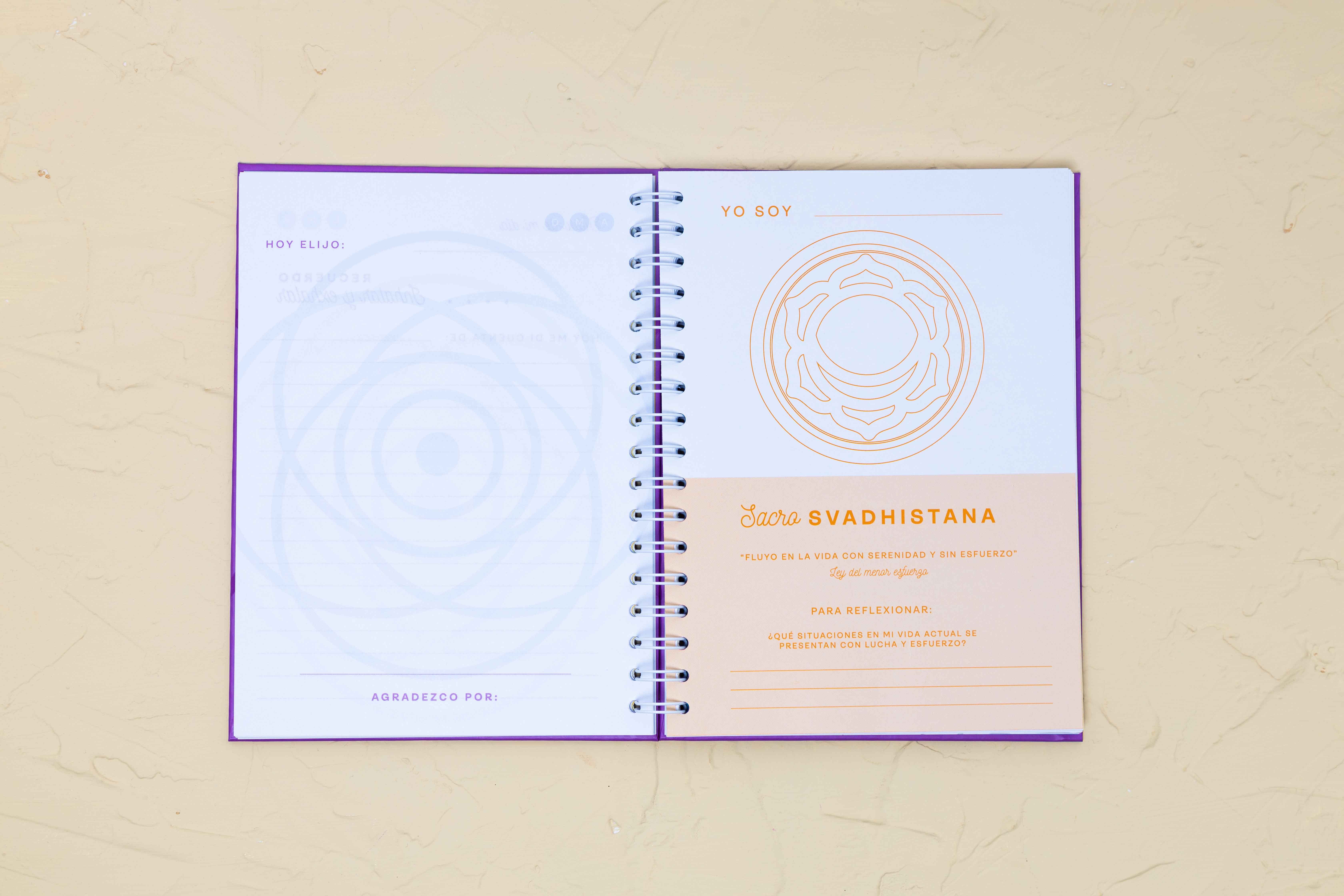 Descripción: Cuaderno espiritual para acompañar por medio de la escritura los procesos de despertar de la humanidad. Contiene 108 hojas de observación interior, 7 insertos con información sobre los 7 Chakras, stickers conscientes y mandalas para colorear.