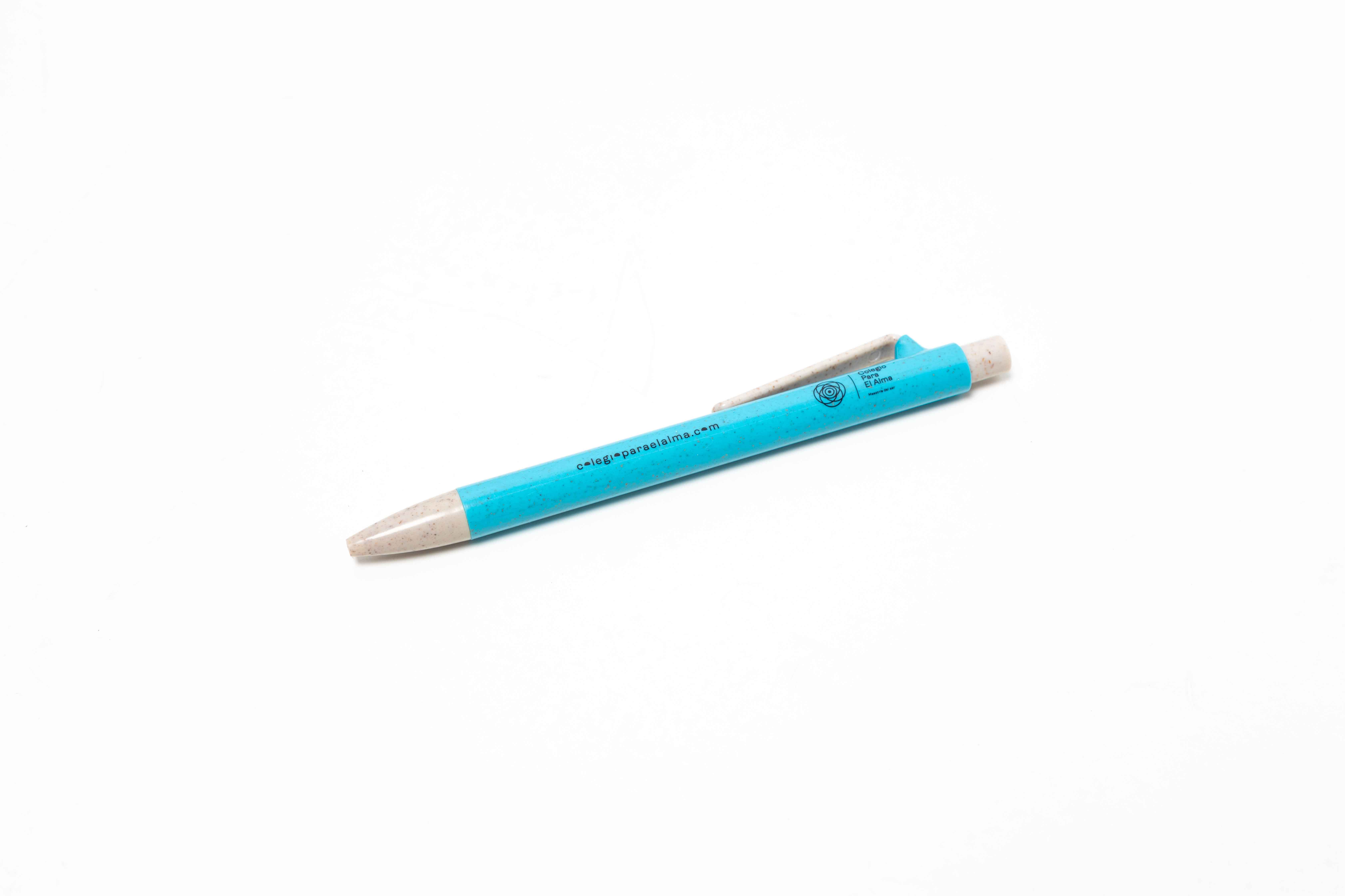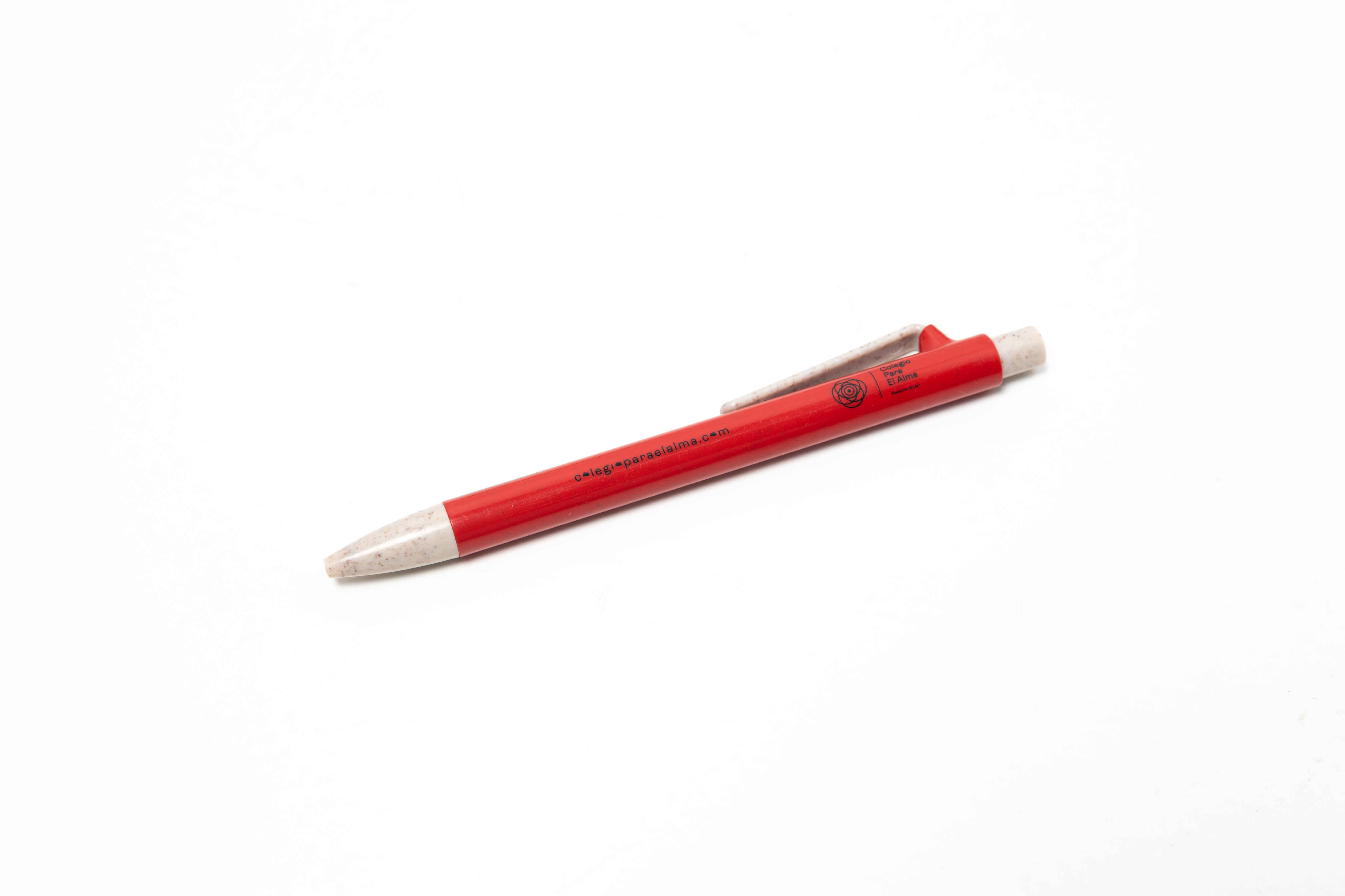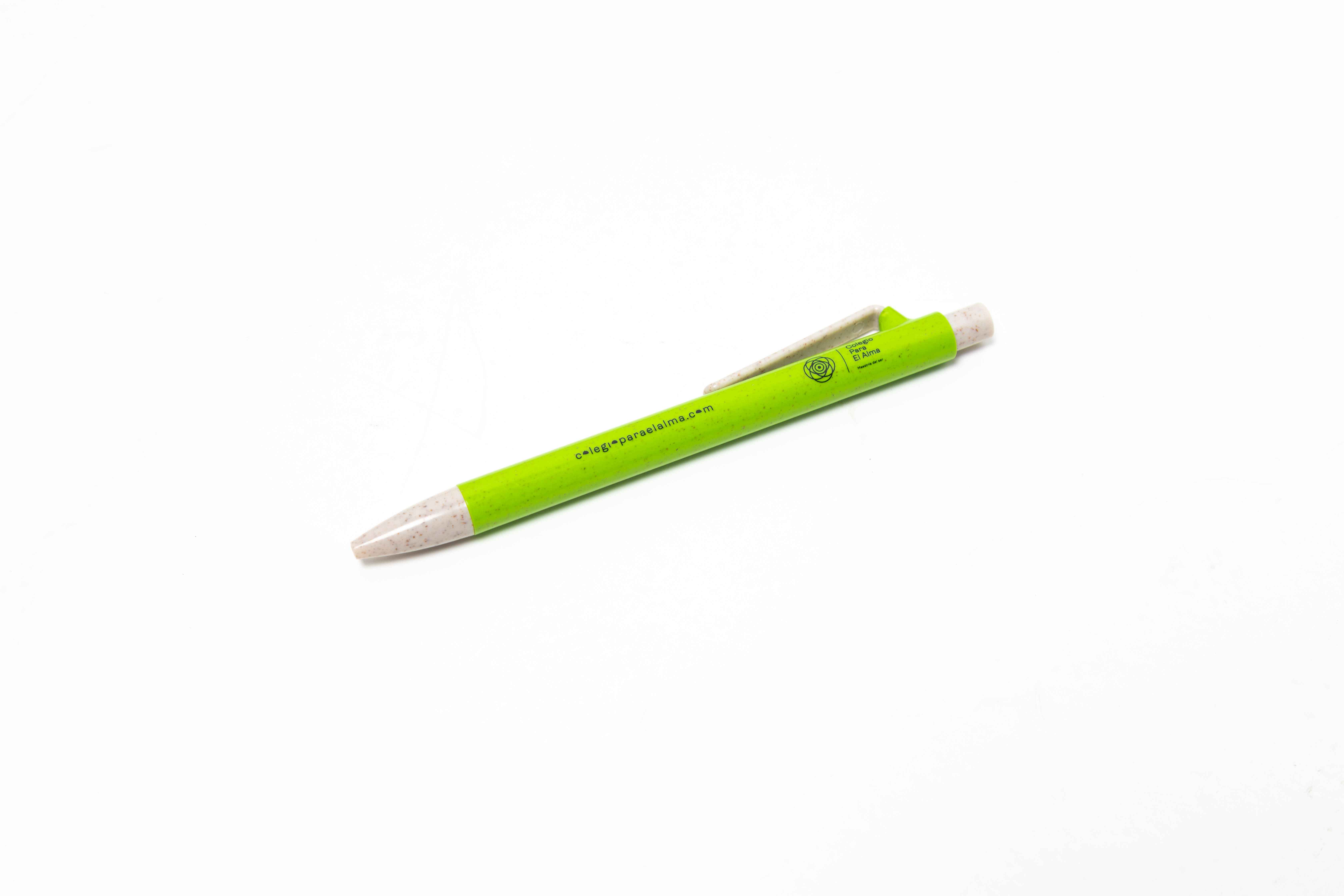 Descripción: lapiceros de tinta negra, vienen en cinco colores: rojo, naranja, amarillo, verde y azul, en representación de los Chackras raíz, sacro, plexo solar, corazón y garganta.